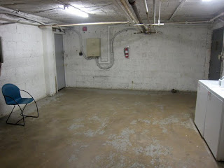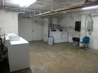 I'm currently living in an old apartment building on the third floor. The laundry room is in the basement. To get to it though, I have to go outside and around the building, cut across the parking lot, go down the stairs and use a key to open an old metal door that leads into a giant cement room.